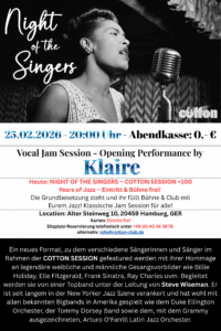 Her goal is to convey emotions and feelings through her music and to be inspired by her fellow musicians and the feedback of the audience. She recorded three albums, one of them is the debut album with her own band Quintett Klaire. Klara Schwabe lives music in all its facets and makes every concert an unforgettable experience.